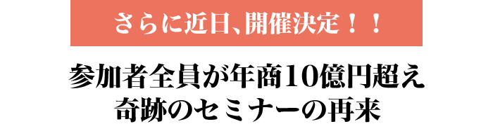 信じられないかもしれませんが、その名前に違うことなく、 大富豪だけを生み出し続けた伝説のセミナーシリーズ。
